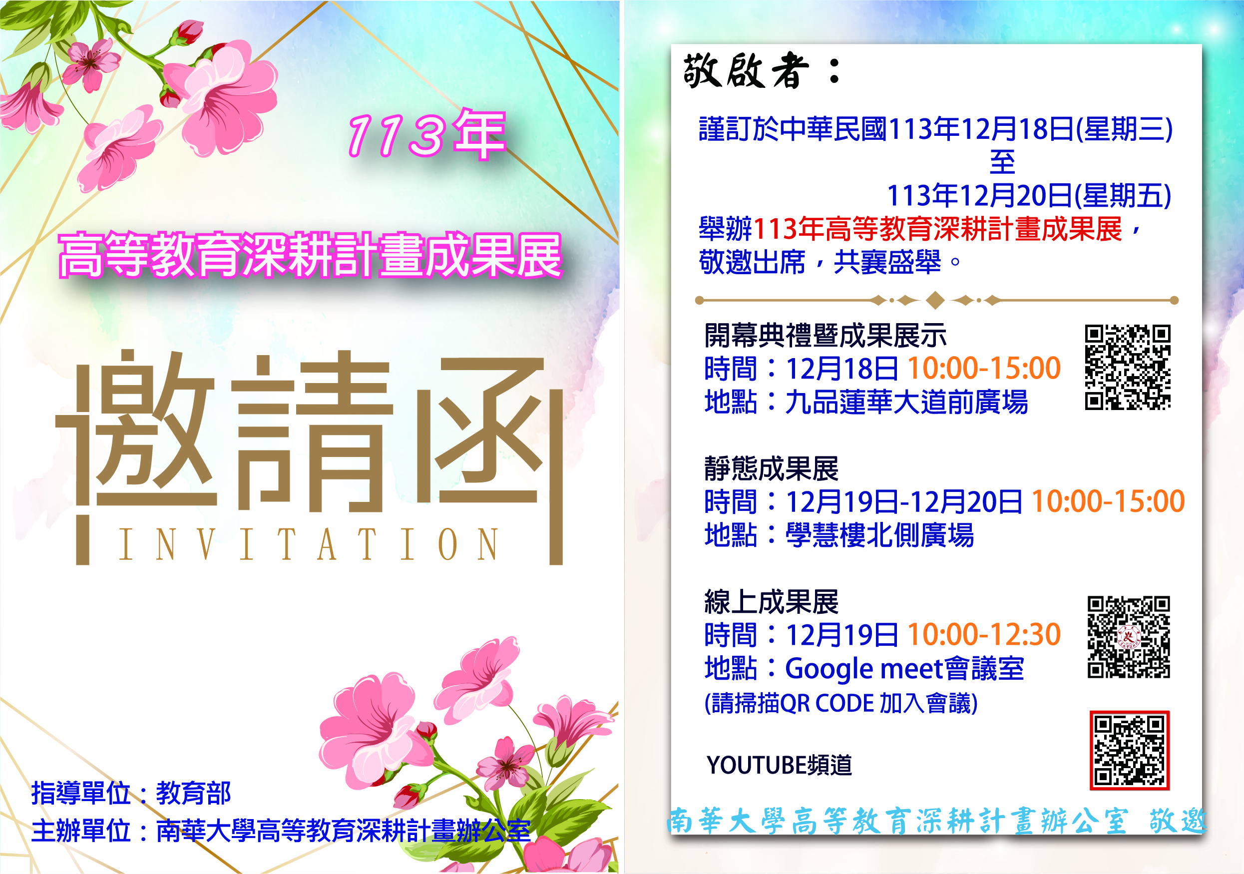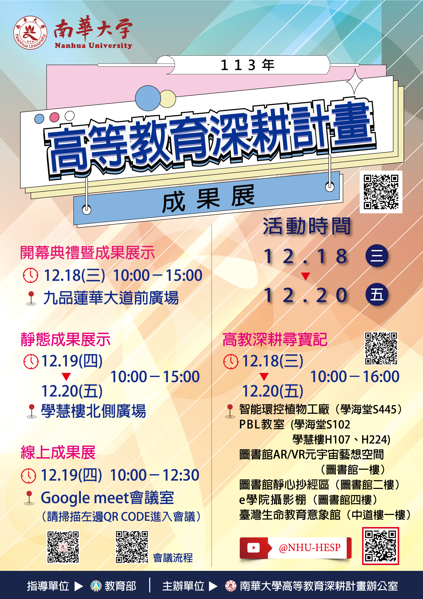 1、時間:113年12月19日(四)上午10時至下午12時30分。